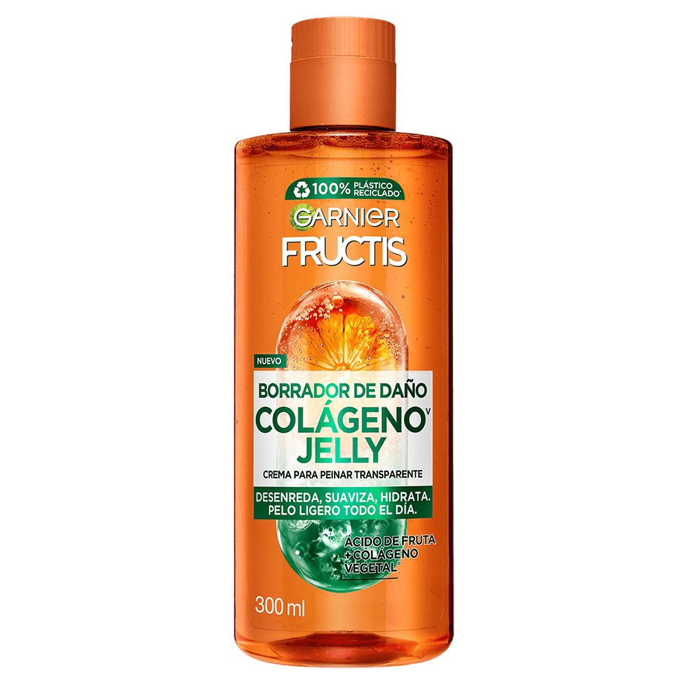 Nuevo Fructis Borrador de Daño Crema para Peinar Transparente ‘Colágeno Jelly’ con Ácido de Fruta y Colágeno Vegetal. Apto Para Cabello Dañado y oleoso. Nueva tecnología transparente y ligera para peinar tu cabello sin sensación pesada, protege el cabello del quiebre, daños términos y daños UV dejando un cabello manejable y suave durante todo el día.