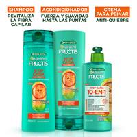 Garnier Fructis 10 en 1 Crece Fuerte Su fórmula con Naranja Energizante, vitamina C° y taurina deja tu cabello 98% más fuerte y reduce la caída, la nueva crema te da los beneficios que necesitas en un solo producto.